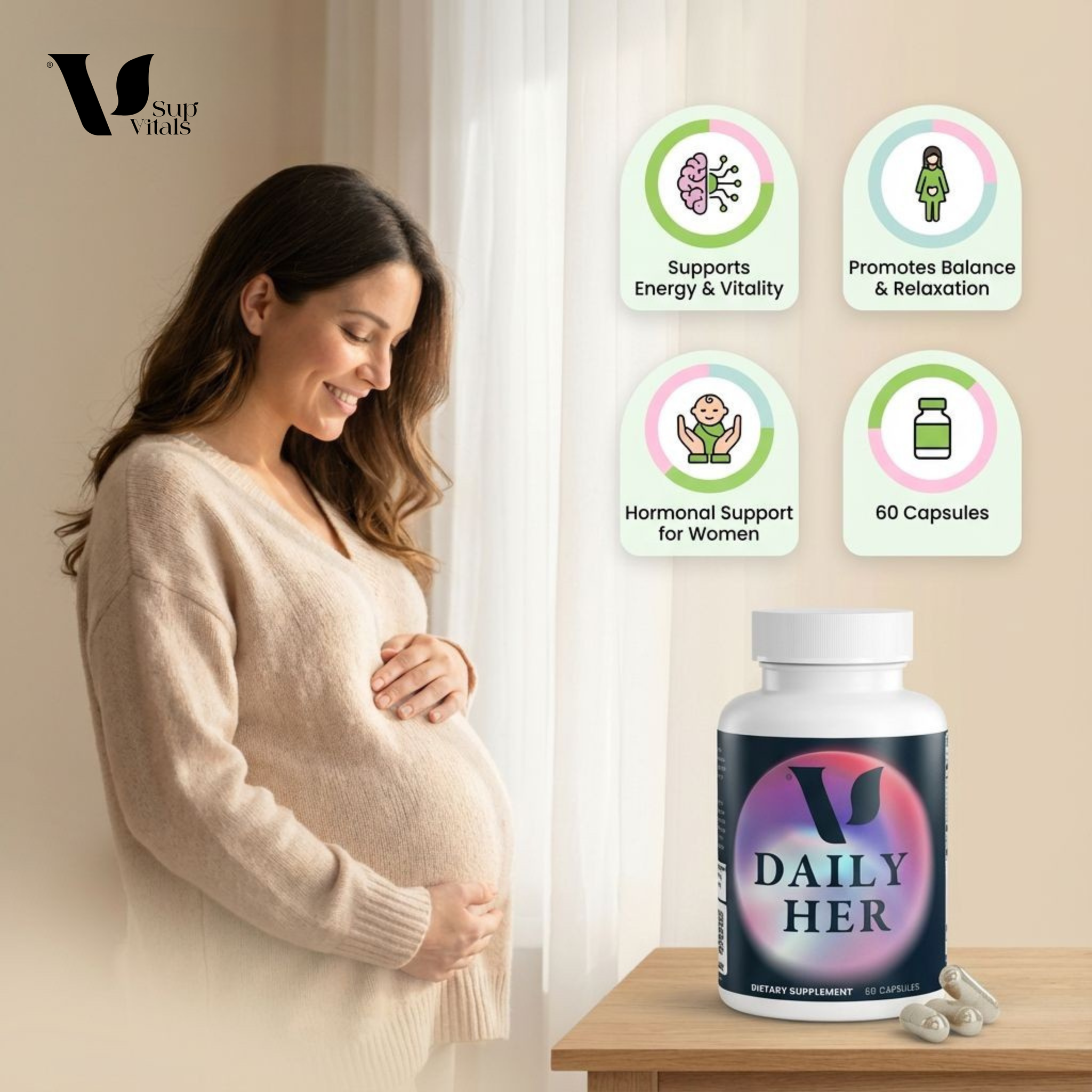 Daily Her is a supplement crafted to help women feel their best every day. This formula includes key vitamins such as B6, B12, and Pantothenic Acid, which contribute to energy metabolism and overall vitality. Zinc is also included to support normal immune function and wellness.